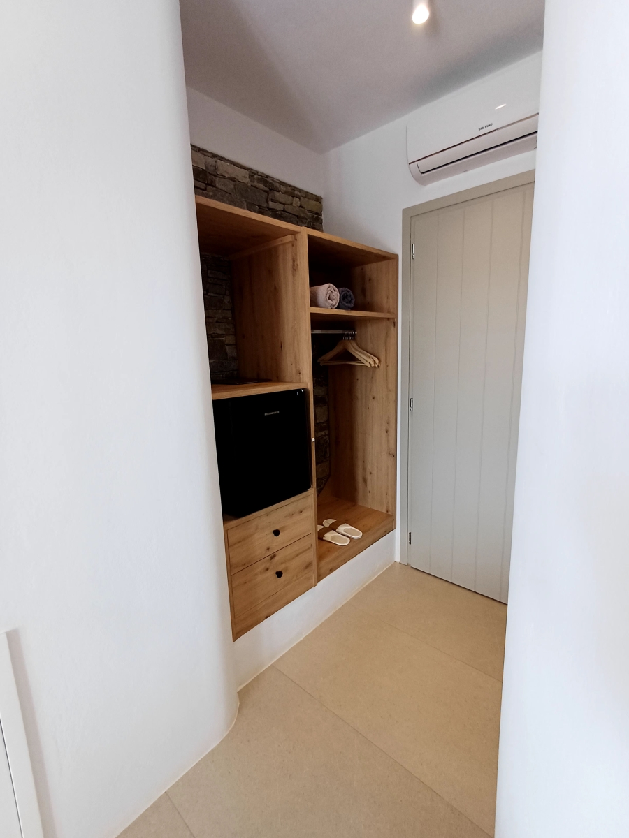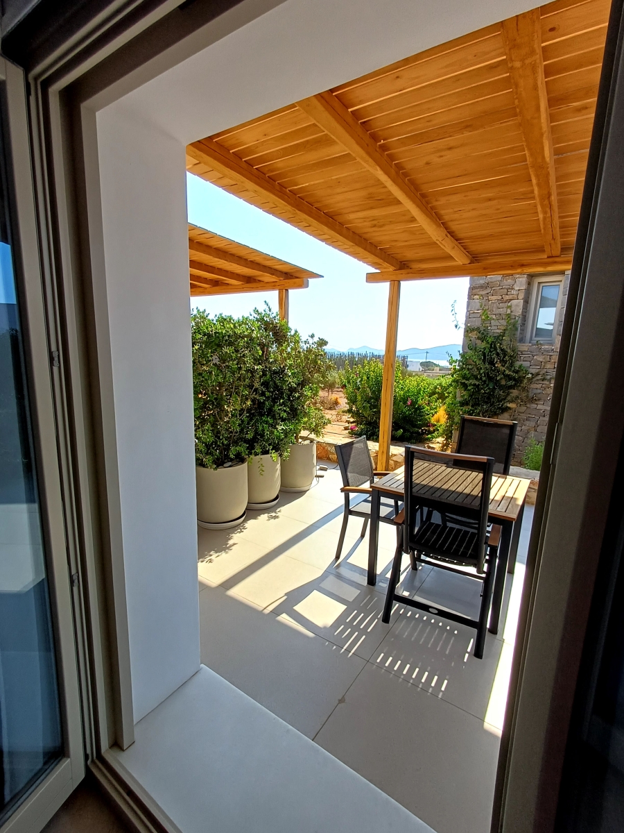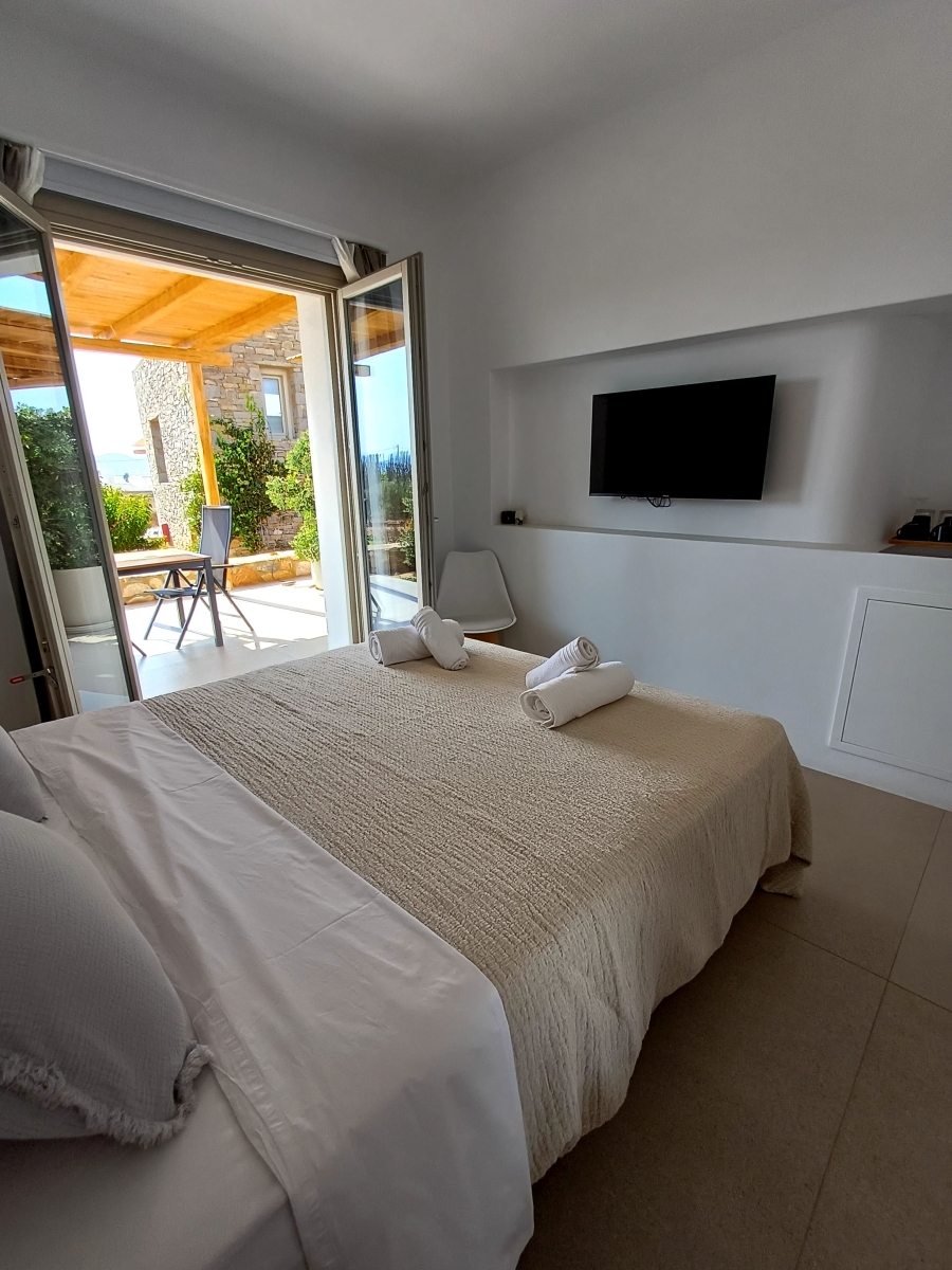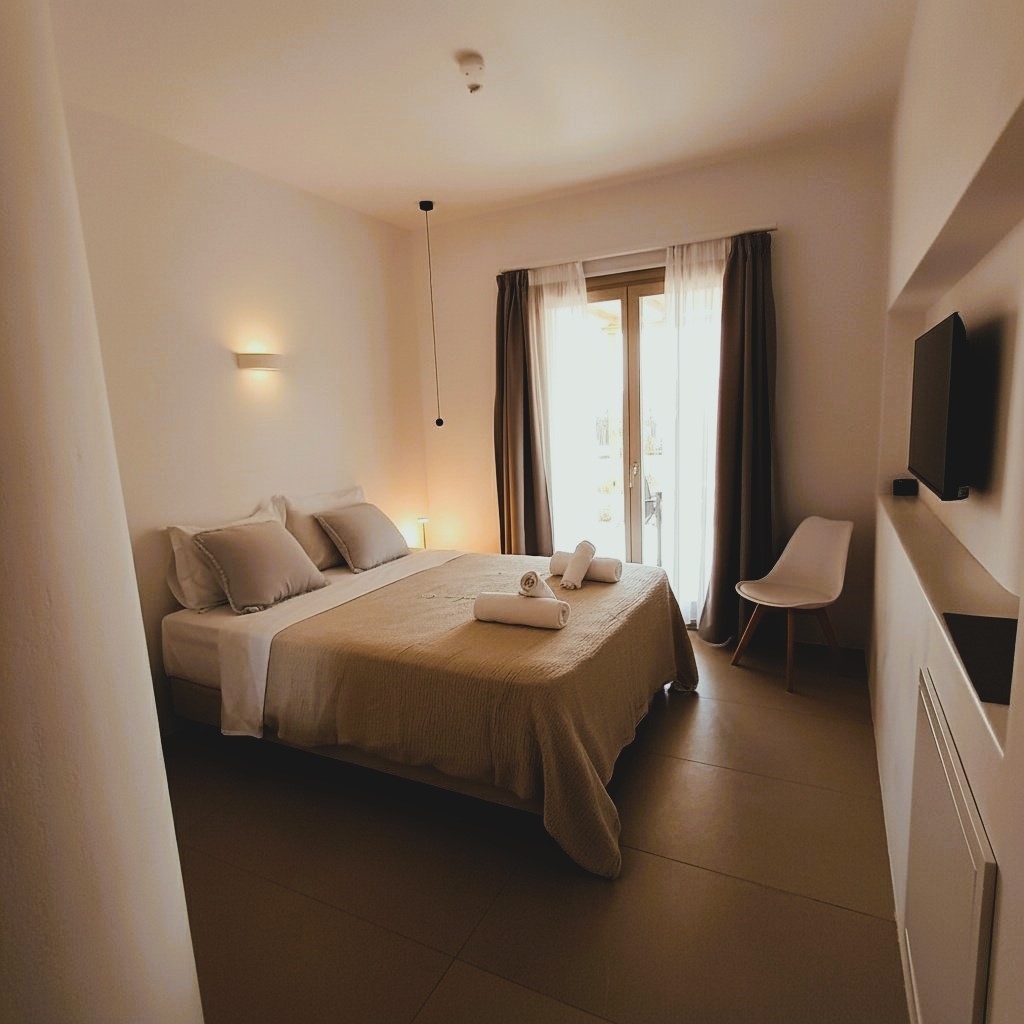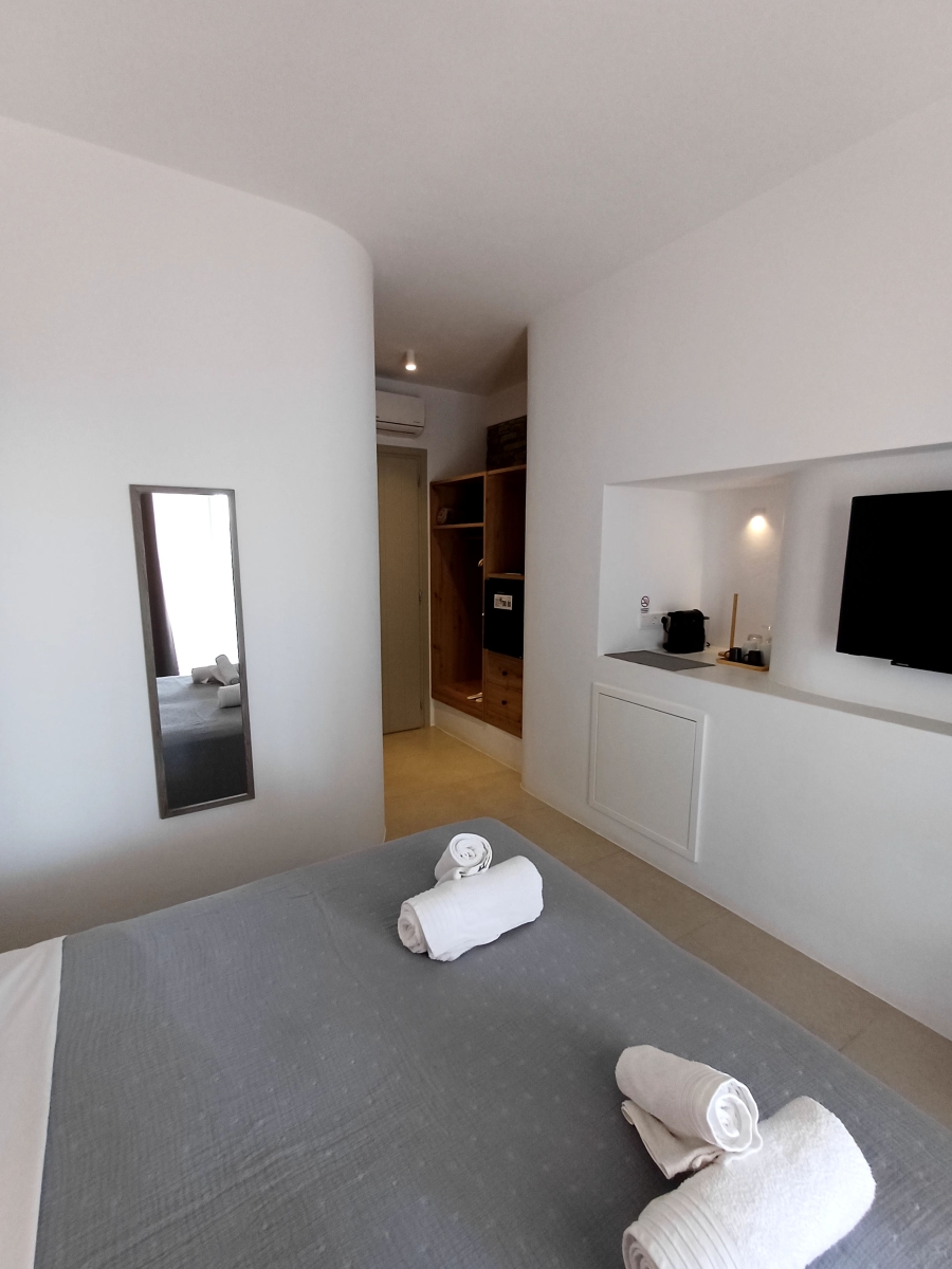 The Standard Studio is a comfortable room with a double bed, a private spacious bathroom, a wardrobe and a minibar. In the area there is a counter with a Nespresso coffee machine and cutlery to prepare your breakfast. The decoration is minimal, with white and pastel shades dominating. Linen and cotton percale linen. The bathroom is modern with a shower cabin There is also a sunny , comfortable 15 sq.m. terrace with a dining table.