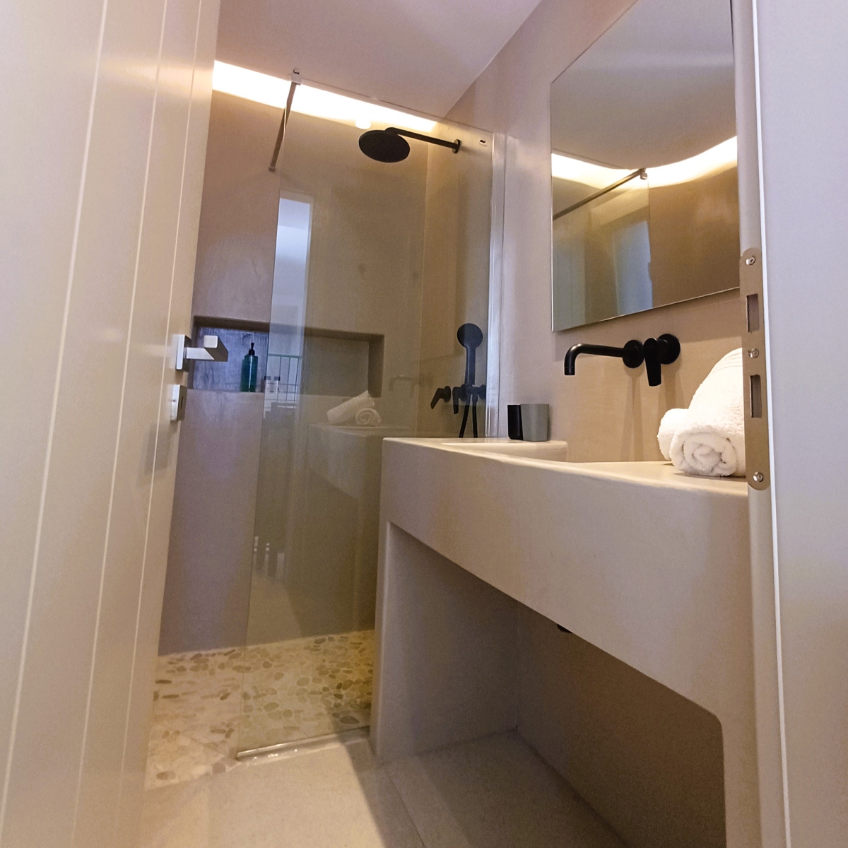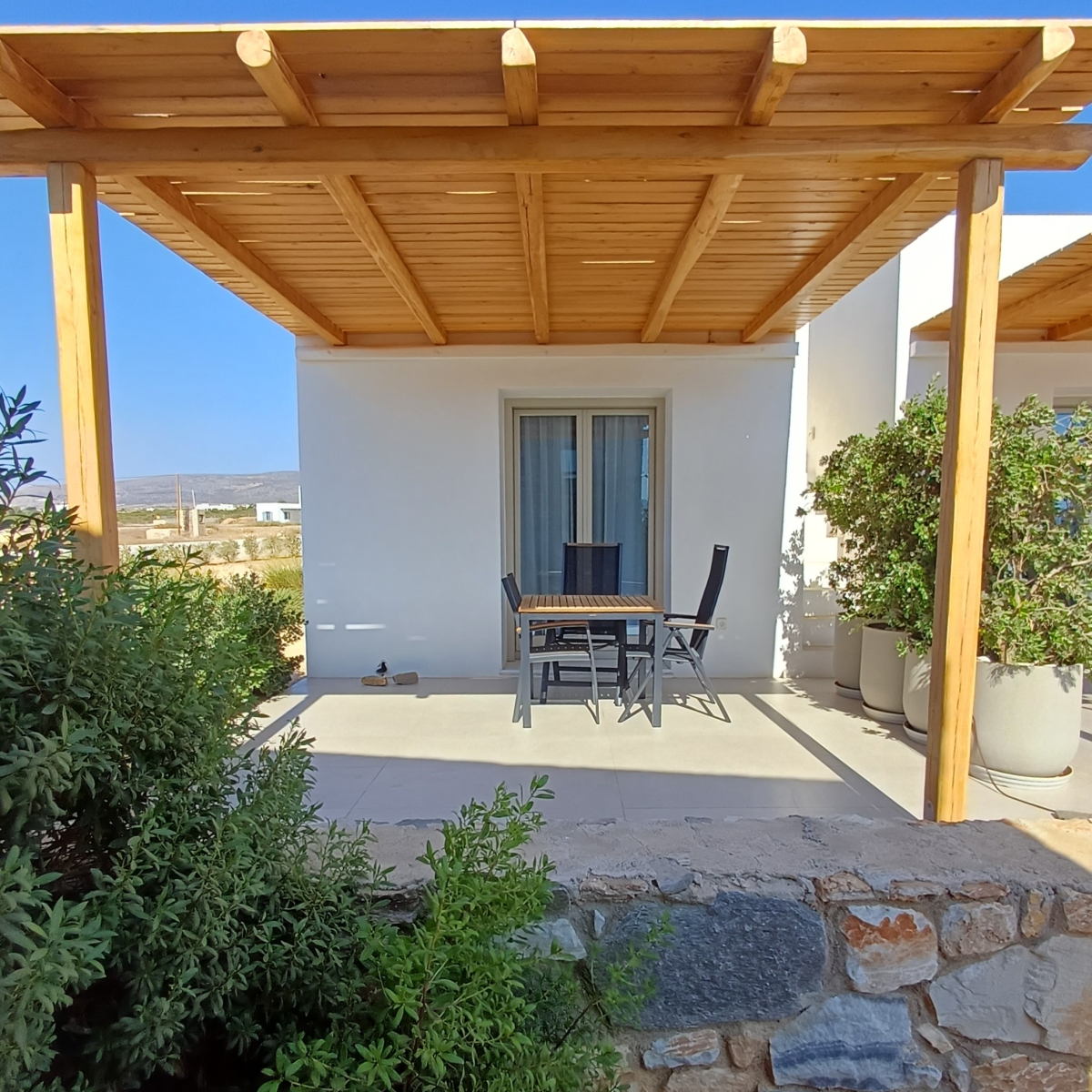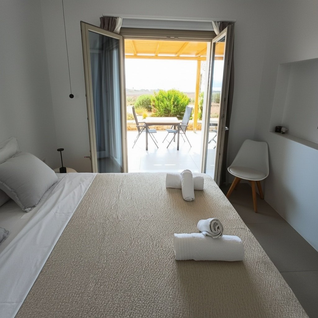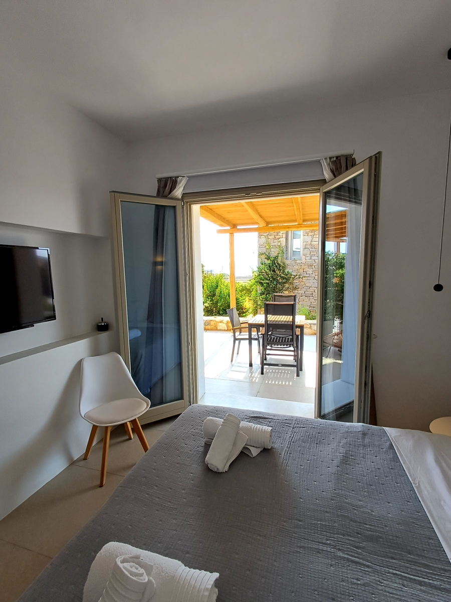 The Standard Studio is a comfortable room with a double bed, a private spacious bathroom, a wardrobe and a minibar. In the area there is a counter with a Nespresso coffee machine and cutlery to prepare your breakfast. The decoration is minimal, with white and pastel shades dominating. Linen and cotton percale linen. The bathroom is modern with a shower cabin There is also a sunny , comfortable 15 sq.m. terrace with a dining table.