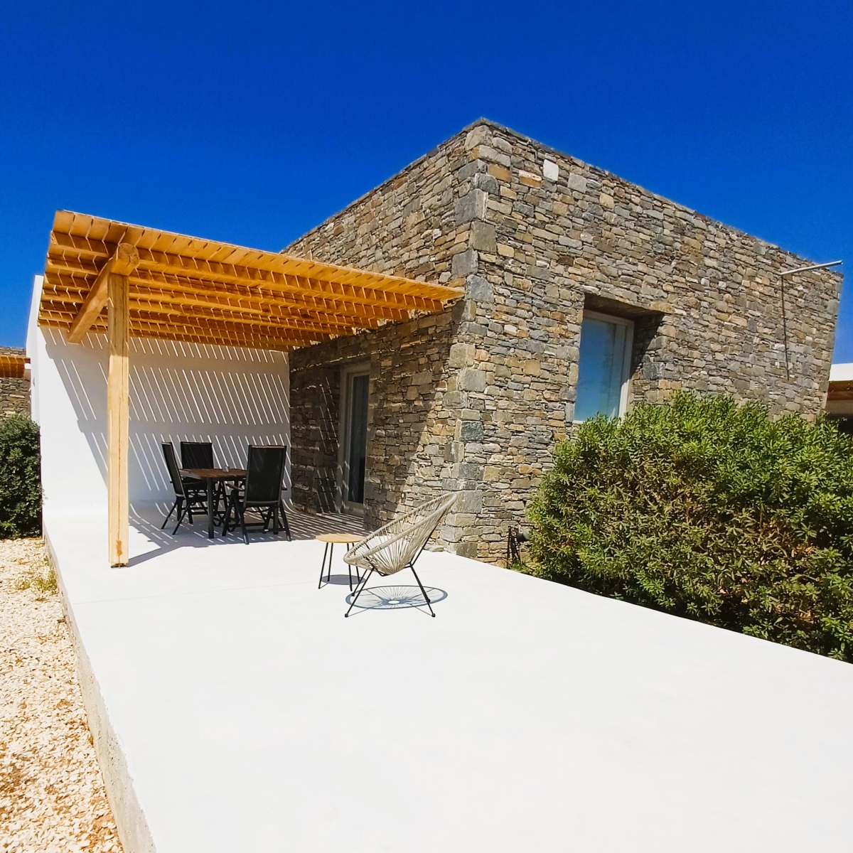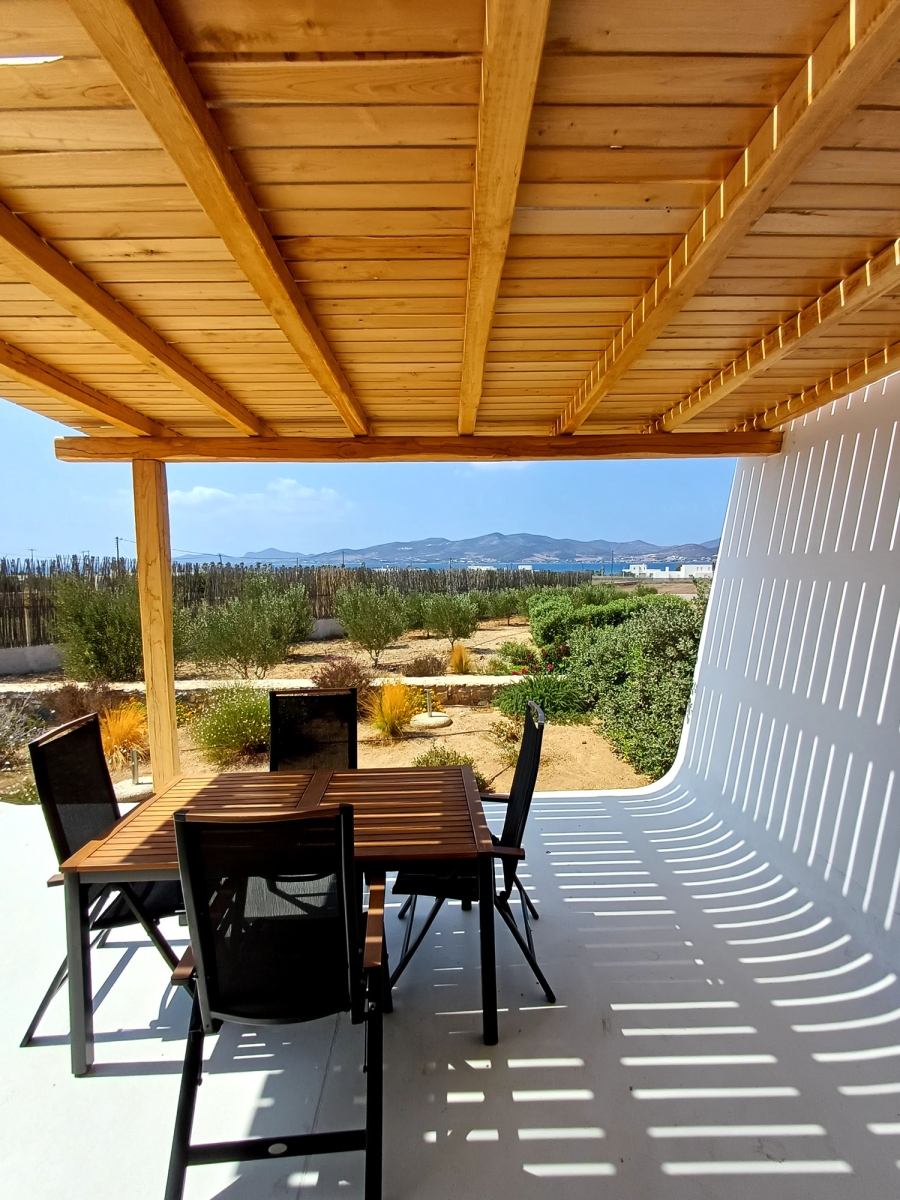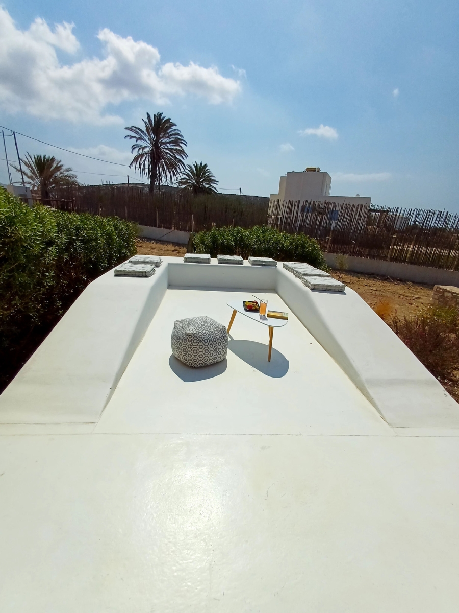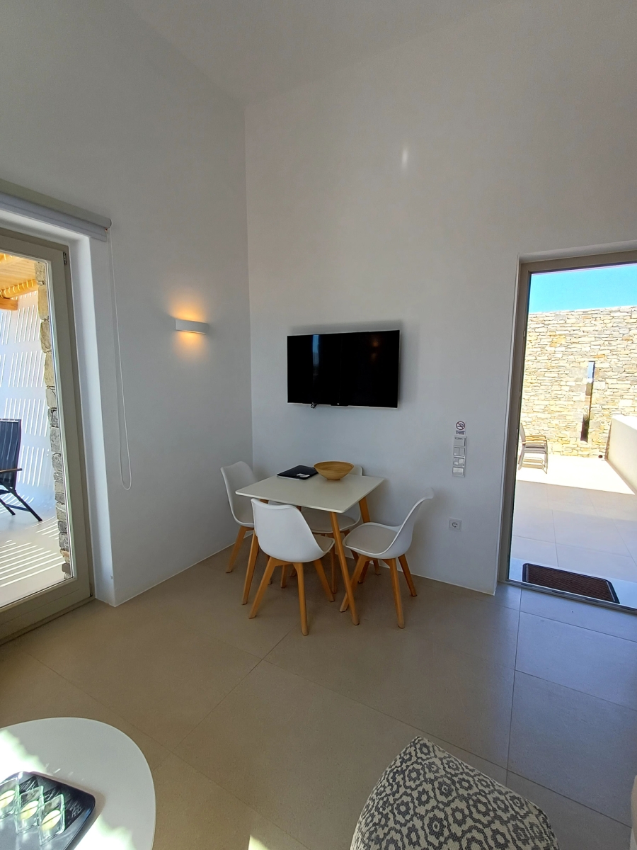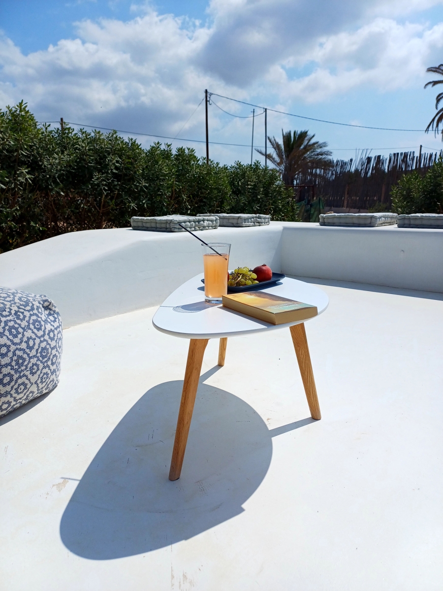 Un joli loft, qui est de 4,5m de haut avec une terrasse privée et vue sur la mer. Il a des meubles modernes et minimales. Le salon a des matelas anatomiques, une table à manger. Il y a aussi une cuisine. Dans le lit il y a unmatelas double anatomique, des linges de maison en percale de coton et en lin. Il y a une salle de douche spacieuse. Vous vous détendrez dans un espace très ensoleillé.